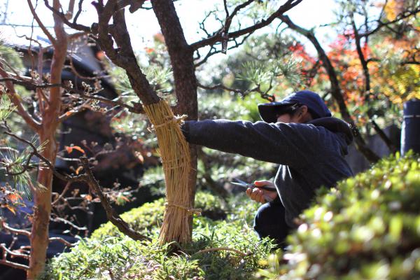 冬支度をする庭師さんです。