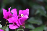 雨の時の花の写真です。 白とピンク、紫の花の写真です。