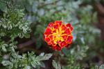 雨の時の花の写真です。 赤に黄色の花の写真です。