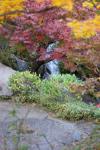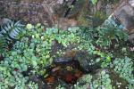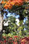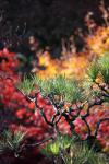 庭園を散歩した時の写真です。 赤い花をメインに、バックで風に揺れるみかんのような果実を撮ってみました。