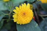 雨の時の花の写真です。 ご近所の鉢植えに会った黄色の花です。 キク科の花ではありそうなので、今度調べてみます。